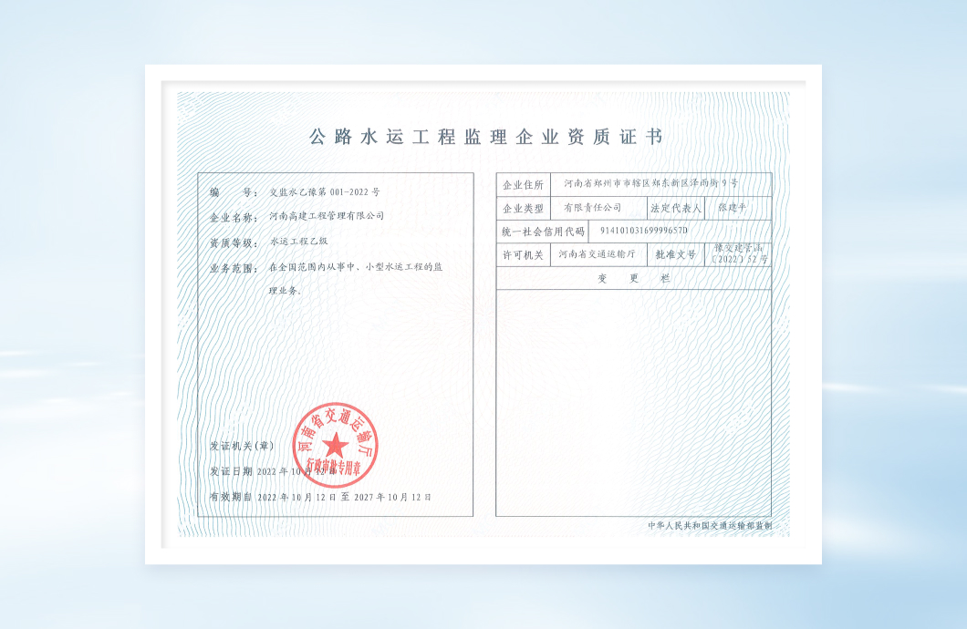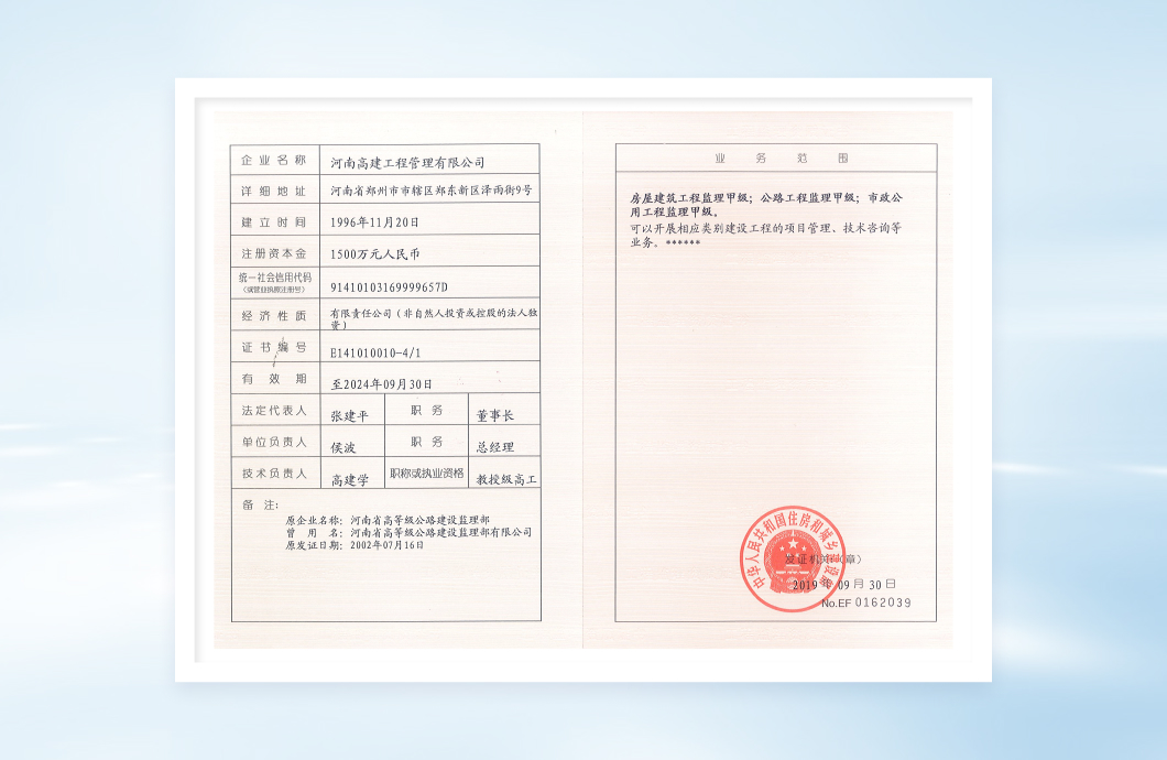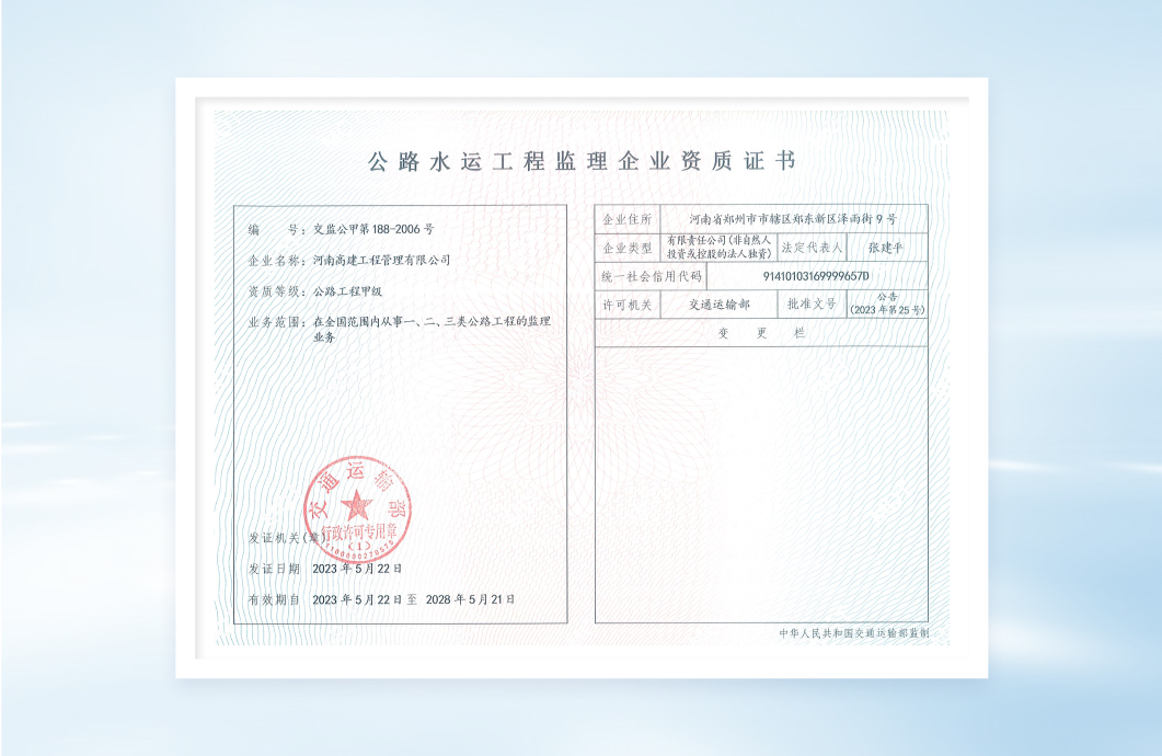 河南高建工程管理有限公司是全國首批12家公路甲級監理企業之一,為設研院的二級獨立法人企業。公司自1991年初開始從事公路工程的施工監理及咨詢工作,經過30余年的磨礪,現已發展成為一家擁有“監理行業較全資質體系、全過程工程咨詢服務能力”的工程顧問服務型企業,專業覆蓋公路、市政、房建、水運、水利等多個領域,依托公司及設研院結構完善、穩定的高素質技術團隊,可為客戶提供工程監理...